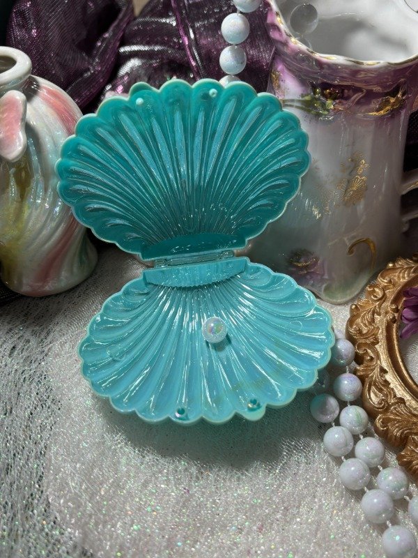 Alajero en forma de caracola con perla en su interior. Es de plástico y se le puede dar cualquier uso.